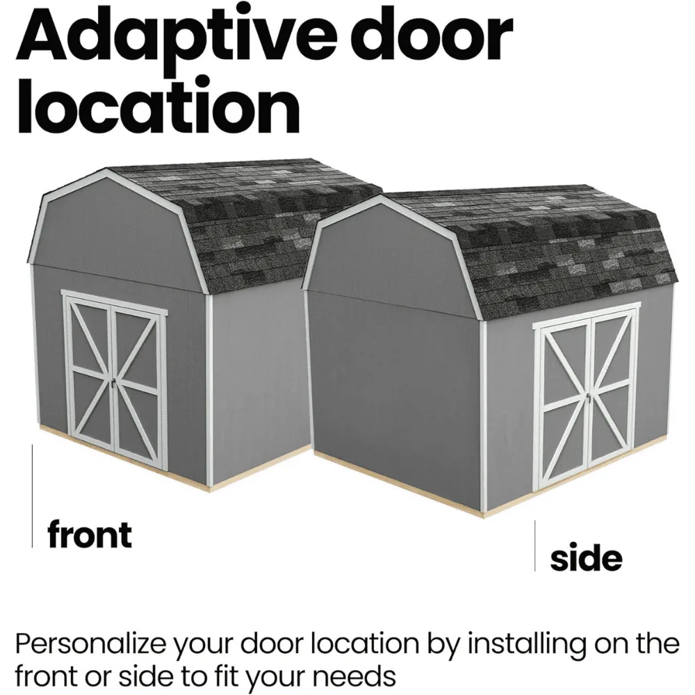 • Designed with durability and versatility in mind, this high-quality wood shed provides ample headroom, strong framing, and a customizable layout, ensuring long-lasting functionality for a variety of uses.