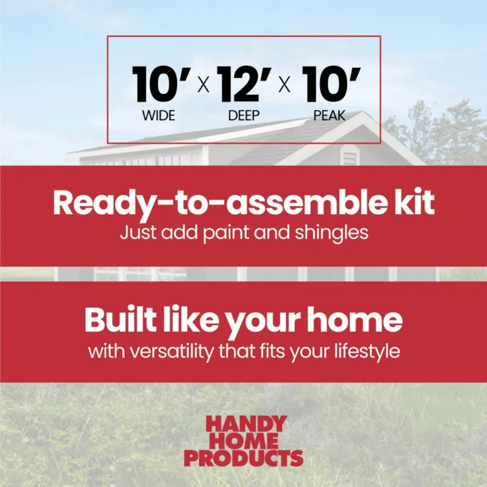 - PREMIUM DESIGN WITH VERSATILITY AND DURABILITY The Handy Home Windemere 10×12 Storage Shed is a spacious and stylish outdoor structure, designed for storage, workshops, or creative studios.