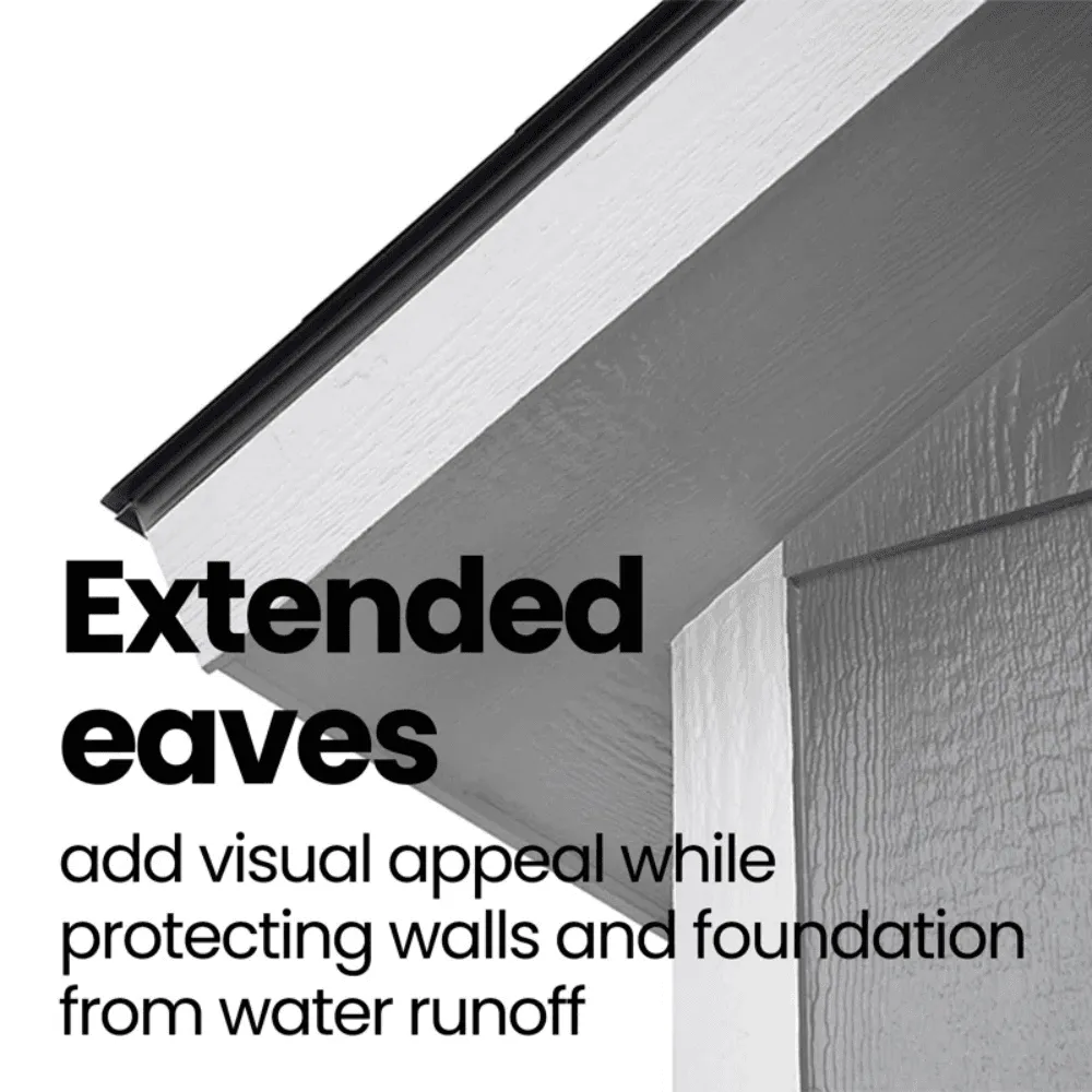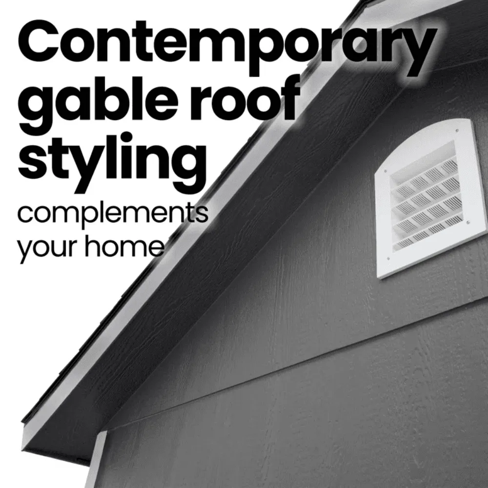 PREMIUM DESIGN WITH VERSATILITY AND DURABILITY The Handy Home Windemere 10×12 Storage Shed is a spacious and stylish outdoor structure, designed for storage, workshops, or creative studios. Featuring extended architectural roof overhangs and a dormer, it blends functionality with contemporary aesthetics, making it a standout addition to any backyard.