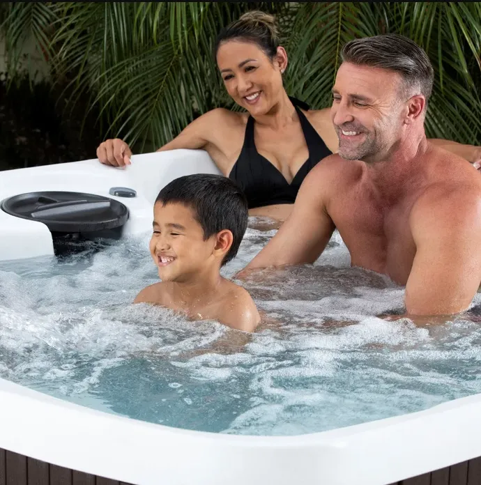 Lifesmart Leganza 6-Person 90-jet 230v Spa with Lounge Seating The Leganza by Lifesmart Spas is a 230V, 90-jet hot tub designed to bring the ultimate spa experience to your backyard. With comfortable lounge seating and space for up to 6 adults, this premium spa features a relaxing waterfall, multi-color underwater LED lighting, and a durable faux-wood exterior for a stylish, modern look.