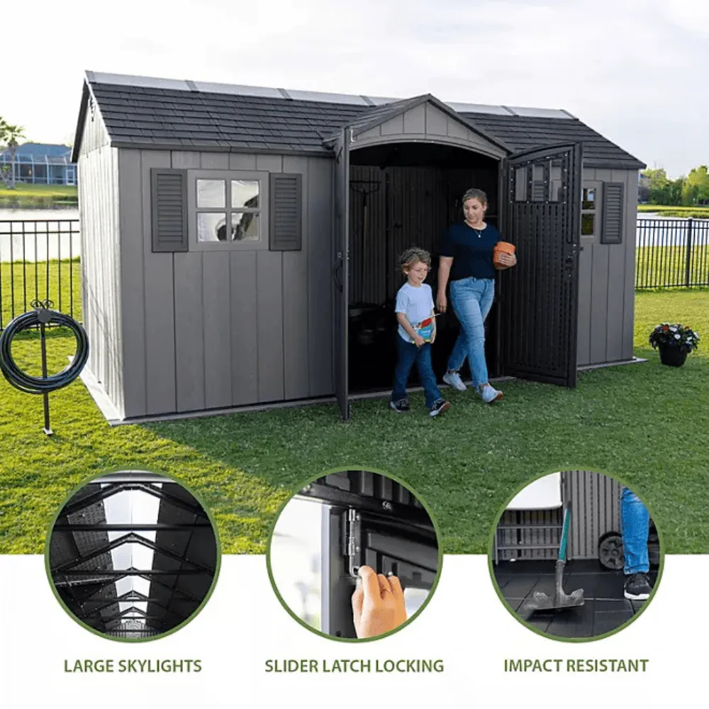 ' Spacious, Durable, and Low-Maintenance Storage Solution The Lifetime Dual Entry 15 ft. Outdoor Shed is designed for ease of use, durability, and low maintenance, making it an ideal long-term storage solution for outdoor essentials.