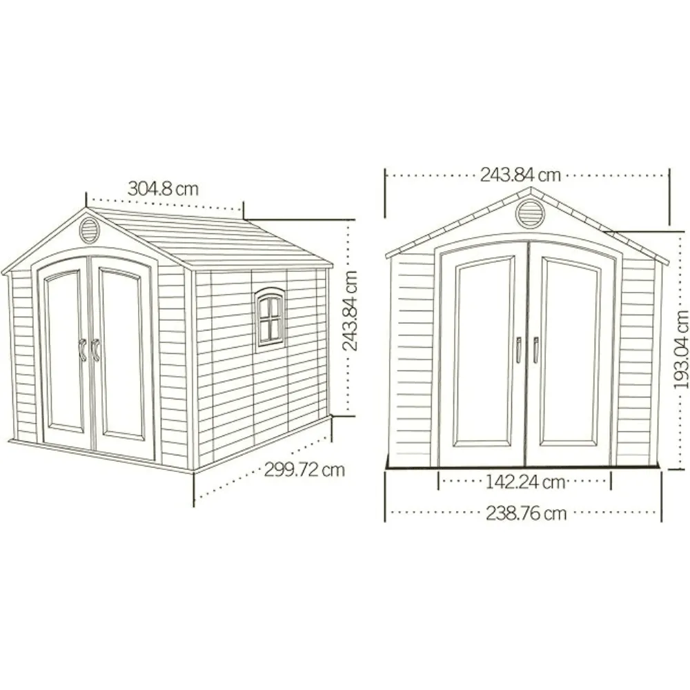 - Lifetime 8′ x 10′ Outdoor Plastic Storage Shed – Durable, Spacious & Weather-Resistant The Lifetime 8′ x 10′ Outdoor Plastic Storage Shed is the perfect solution for keeping your outdoor space organized and protected.