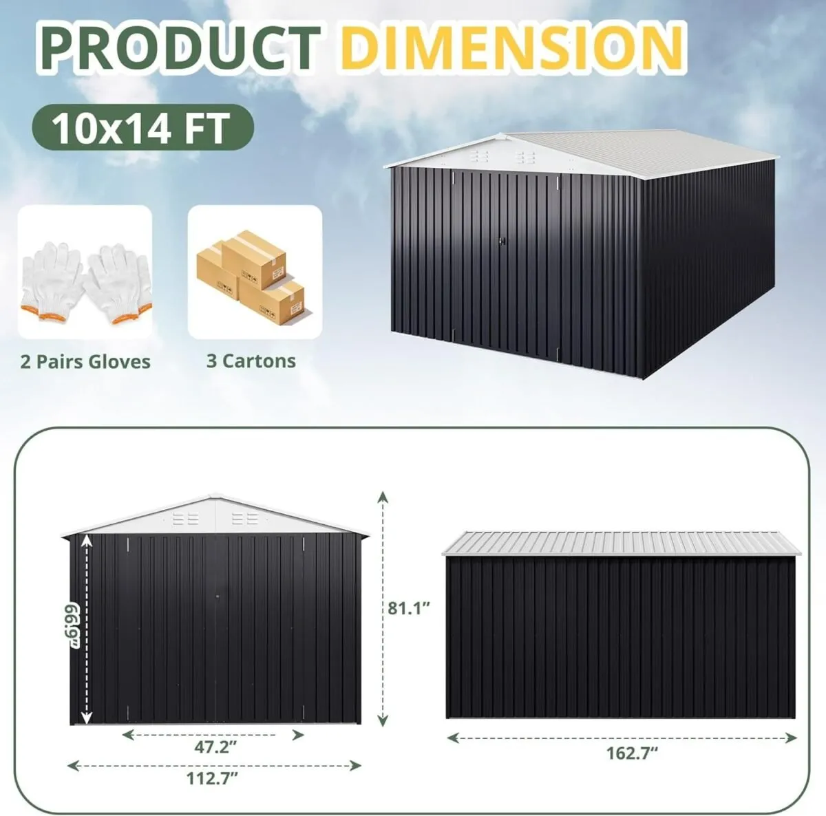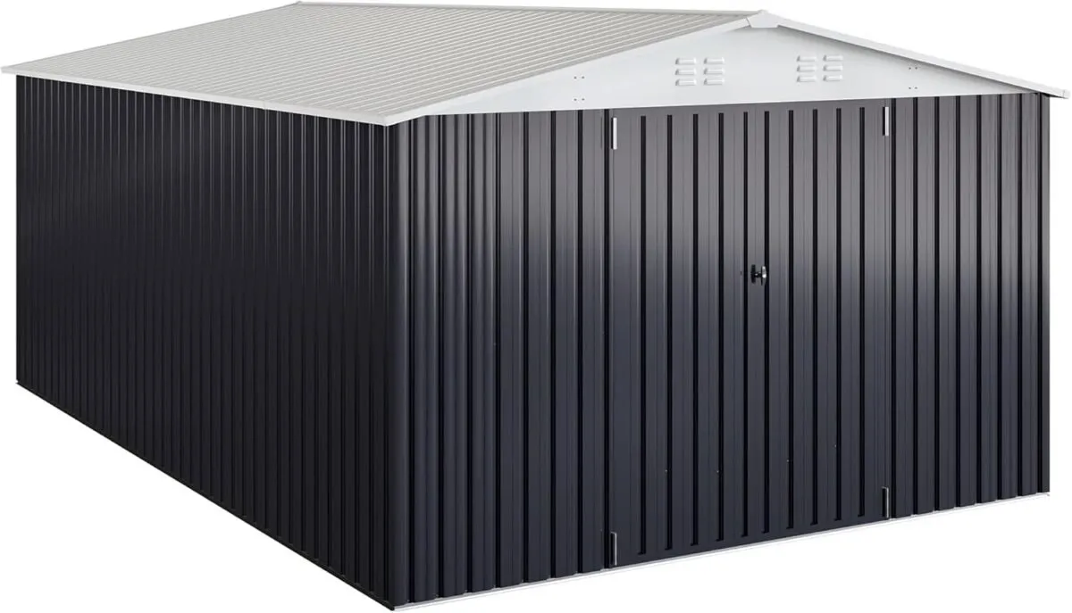Tags: 10x12 Storage Shed, 119 sq ft shed, backyard shed, Galvanized Steel Shed, garden storage, lockable storage shed, outdoor metal shed, Patiowell metal shed, Tool Shed, weather-resistant shed